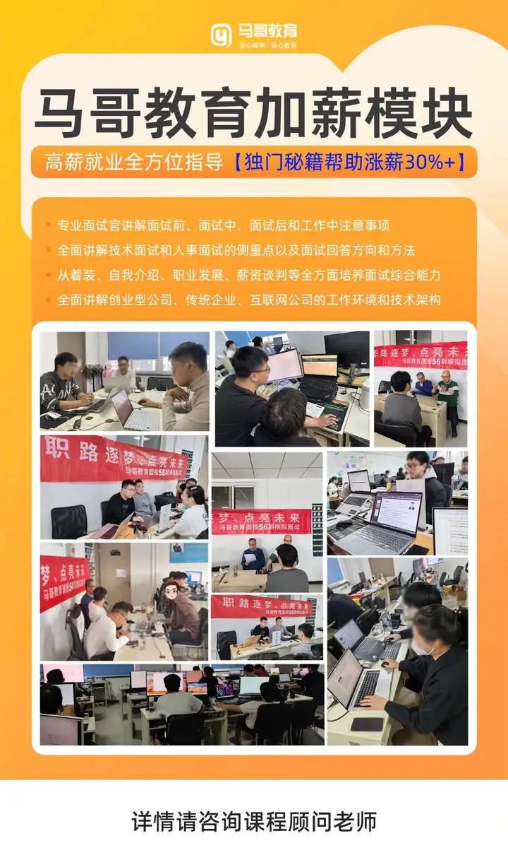 马哥教育提供全方位的增值服务,包括实践选修课程、终身免费答疑以及高薪内推和全方位指导等。且与众多知名企业合作,为学员提供丰富的就业机会。
